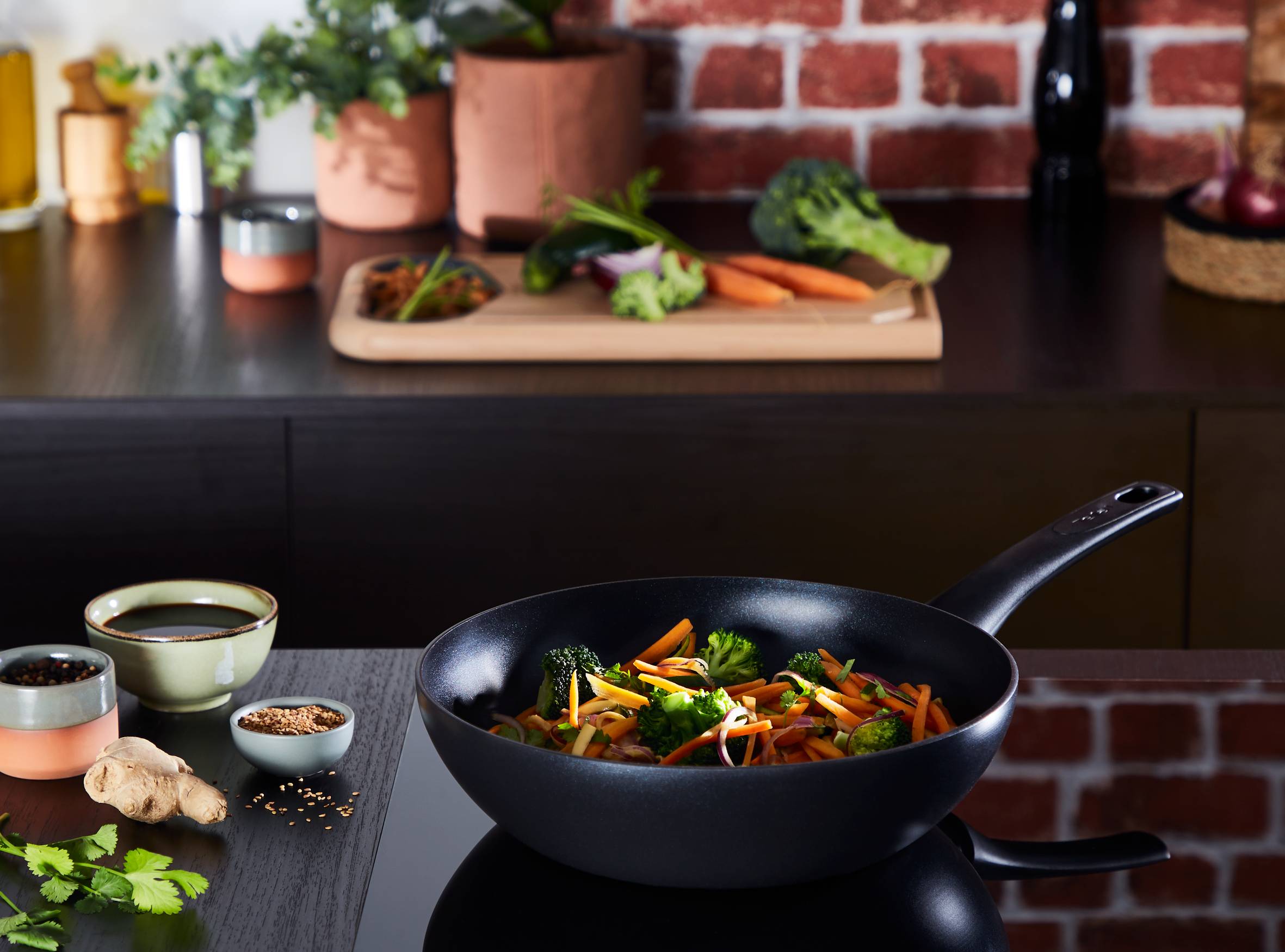 Fedezze fel a Tefal Daily Cook 28 cm-es rozsdamentes acél wok serpenyőt állítható fedéllel.