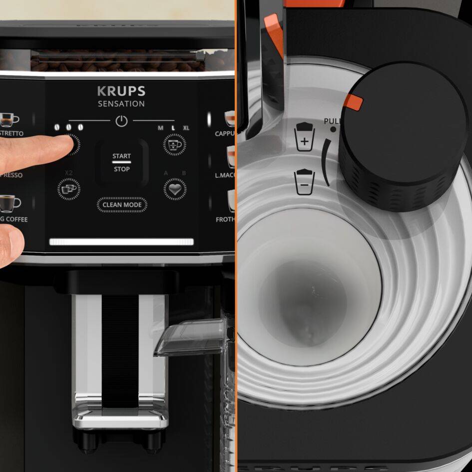 Készítsen egyszerűen és könnyedén prémium minőségű lattét és cappuccinót. Az exkluzív Milk Maestro technológiának köszönhetően a KRUPS Sensation Milk automata kávéfőző 6 egyedi italt készít frissen őrölt szemes kávéból, tökéletesen krémes tejhabbal. Készítse el kávé- és latte italait úgy, ahogyan Ön szereti, barista minőségben, ennek a könnyen tisztítható, könnyen karbantartható és helytakarékos gépnek köszönhetően.
