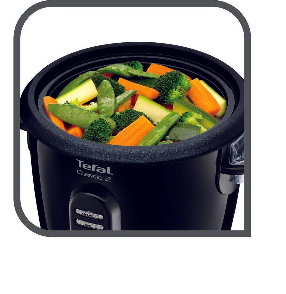 A rizsfőző optimális puhaságúra főzi a rizst. A rizs ízletesebb és puhább lesz. Az automatikus hőmérséklet-fenntartó funkciónak köszönhetően a főzés során semmit sem kell ellenőriznie. A tökéletes rizs elkészítése a megfelelő adagolással kezdődik. Egy négytagú család számára 2 adagolókanál rizst és 3-4 adagolókanál vizet használjon. A Tefal rizsfőző egyszerű kezelést kínál - csak helyezze be a hozzávalókat és nyomja meg a gombot. A kivehető tapadásmentes főzőedénynek köszönhetően különböző rizsfajtákkal kísérletezhet a jázmin rizstől a sushi rizsig. Egyidejűleg készítsen zöldségeket vagy halat a gőzkosárban. A praktikus hőmérséklet-tartási funkció biztosítja, hogy a rizs a főzés után akár 2 órán át tökéletes maradjon. A jobb íz érdekében babérlevelet vagy más fűszereket adhat a vízhez.