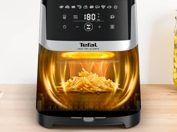 Fedezze fel a Tefal Easy Fry Silence-t, a legcsendesebb légkeveréses sütőt*, amelyet a tökéletes ételekért és a nyugalomért terveztek. Élvezze a gondtalan sütést a Tefal exkluzív, csendes technológiájával, hogy zavartalanul folyjon a főzés a konyhában. Az eltávolítható előlap lehetővé teszi a könnyű tisztítást és tárolást, míg az érintőképernyő intuitív vezérlést és egyéb előnyöket nyújt. Mindez egy olyan légkeveréses sütőn található, amely 70 %-kal kevesebb energiát fogyaszt, mint egy hagyományos sütő.***