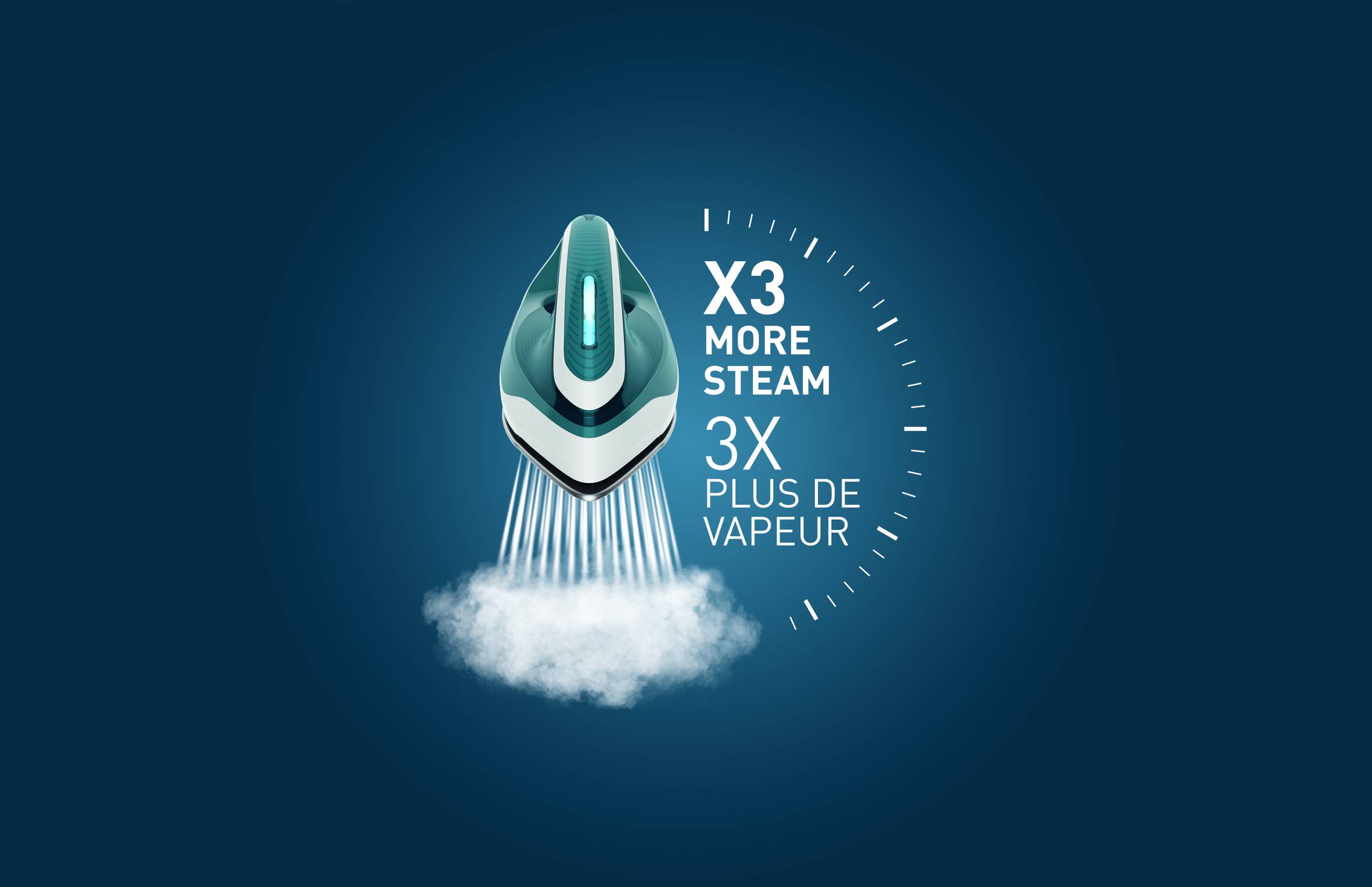 Rendkívül nagy teljesítményű, kompakt, gőzgenerátoros vasaló.