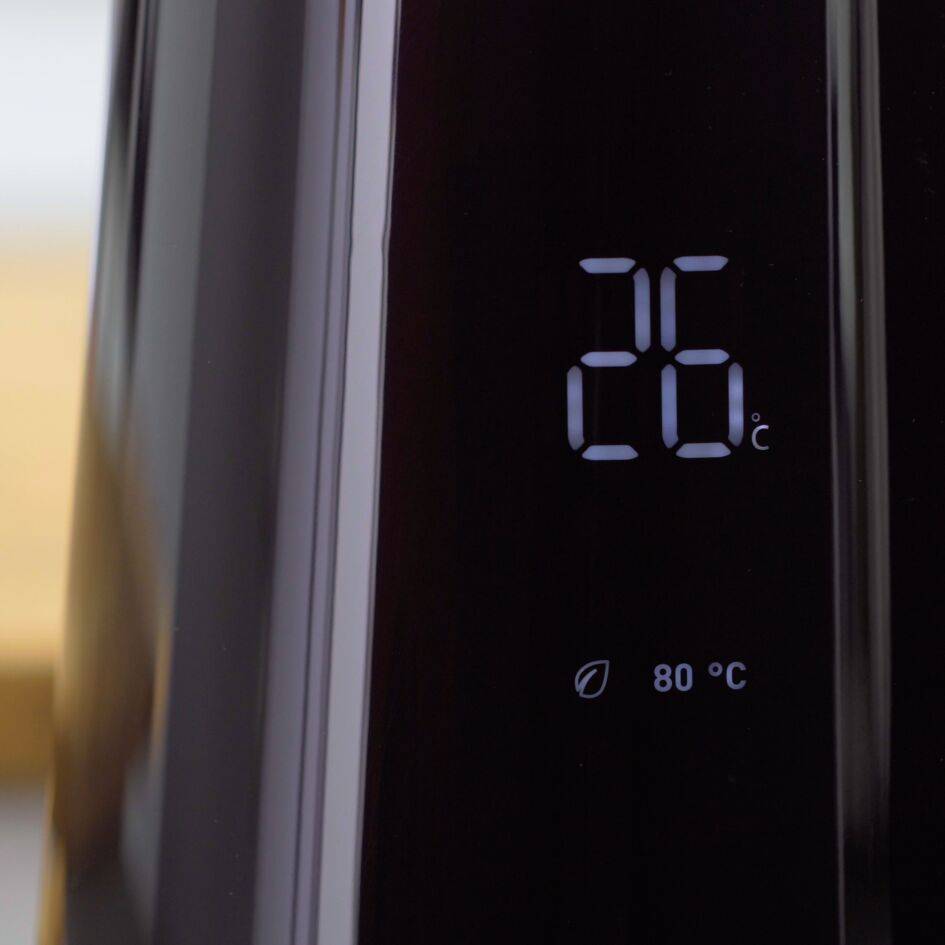 Áttekinthető, digitális, minimalista kijelzővel felszerelt vízforraló a hőmérséklet valós időben történő megjelenítésével. Választható 5 hőmérséklet fokozat: vízforraló 5 hőmérséklet fokozat – 40°C / 70°C / 80°C / 90°C / 100°C – intuitív kiválasztásának lehetőségével. Biztonságosan megérinthető felület: a gondtalan használat és a nagyobb biztonság érdekében a vízforraló kanna külső felülete mindig hűvös marad. Vízmelegítés egyetlen érintéssel: melegítse fel a vizet egyetlen érintéssel, 100 °C-ra beállított hőmérsékletnél. Melegen tartó funkció: 30 percen át megtartja a víz ideális hőmérsékletét a hosszú ideig való használat érdekében. Kivehető vízkőmentesítő szűrő a tisztább edény és víz érdekében. Praktikus rozsdamentes acél belső rész: az egyszerű tisztítás érdekében 360°-ban elfordítható talp: a vezeték nélküli vízforraló biztosan áll a helyén, a talpról minden oldalról könnyen leemelhető és visszahelyezhető rá. Automatikusan nyíló fedél: az egyszerű feltöltés és kényelmes tisztítás érdekében. Dupla falú szerkezet: a vízforraló belsejében megtartja a hőmérsékletet és biztosítja, hogy a kanna külső felülete hideg maradjon. 1,7 l kapacitás: akár 7 csésze ital Automata kikapcsolás: így gondtalanul használhatja