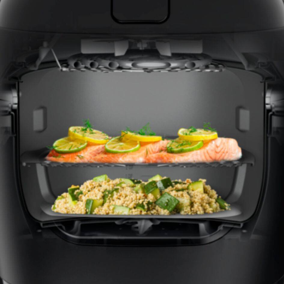 Készítse el az összes ételt egyszerre a kétszintes sütőrendszerrel, és főzzön meg egy teljes, kiegyensúlyozott menüt egy lépésben.
