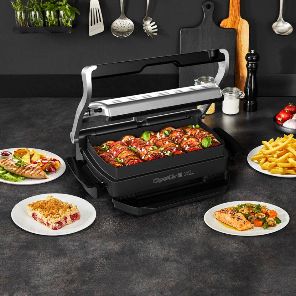 A Tefal Optigrill+ Snacking & Baking XL elektromos asztali grill készülékkel könnyedén elkészítheti a különböző alapanyagokat. Húsételek éppúgy megtalálhatók benne, mint halak, zöldségek vagy szendvicsek.