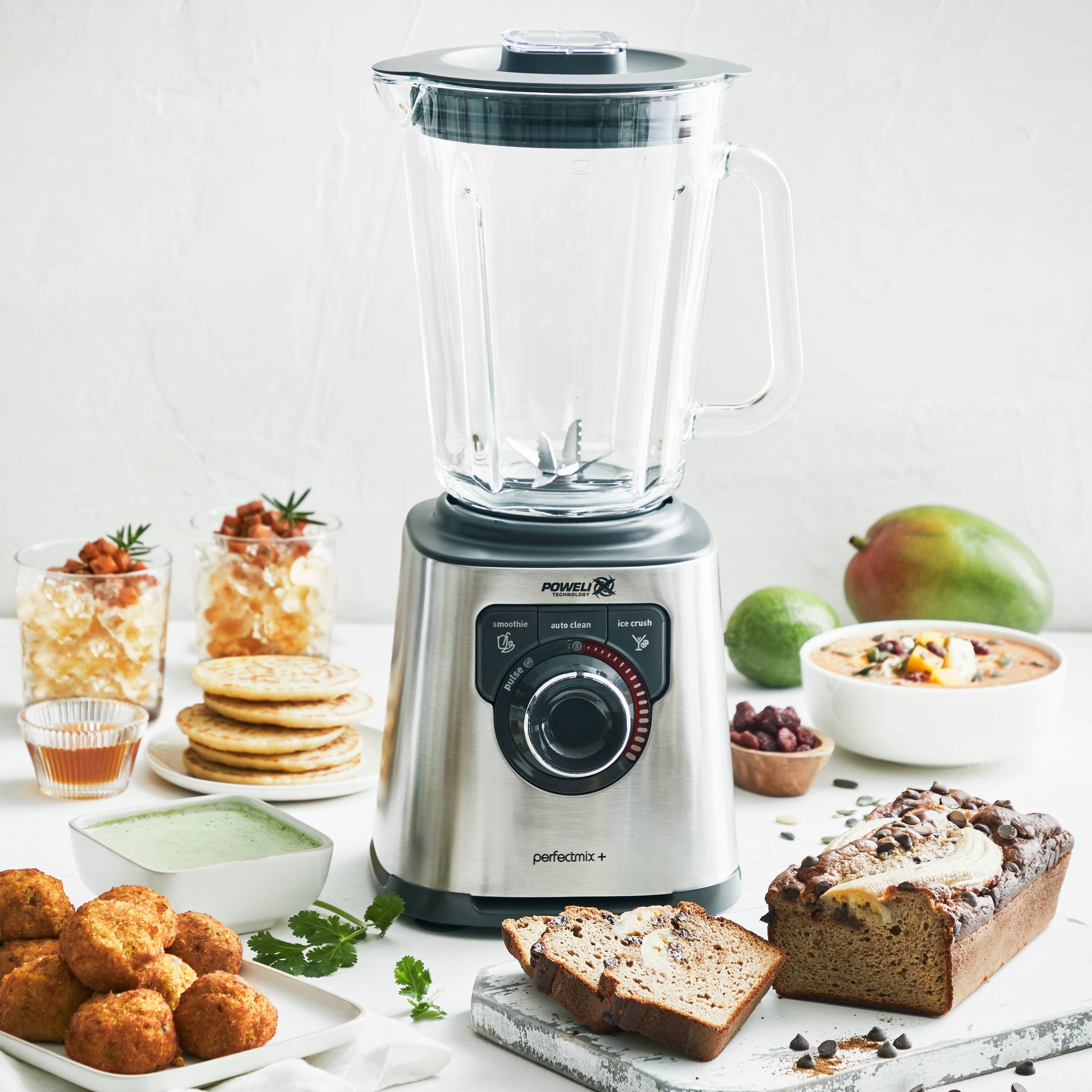 A Perfectmix+ nagy sebességű turmixszal maximálisan kiélvezheti a keverést a Powelix technológiának köszönhetően, mely magában foglal 6 rozsdamentes acél pengét három szinten a tökéletes eredményekért bármilyen kevert élelmiszernél. Az erős és tartós 1200 W teljesítményű motornak köszönhetően biztosítja a gyors eredményeket. A 3 előre beállított program (smoothie, jégdarálás és automatikus tisztítás) könnyedén elbánik minden előkészítéssel. A nagykapacitású edény tökéletes ételek elkészítéséhez az egész család számára. Az edény hőálló üvegből készült, hogy csökkenjen a törés veszélye. A megvilágított sebesség választó pulzáló funkcióval biztosítja a teljes ellenőrzést, míg a levehető rozsdamentes acél pengék lehetővé teszik az egyszerű tisztítást. Mindezt nagyszerűen kiegészíti a túlmelegedést megakadályozó léghűtési rendszer és a praktikus gyümölcs továbbító.