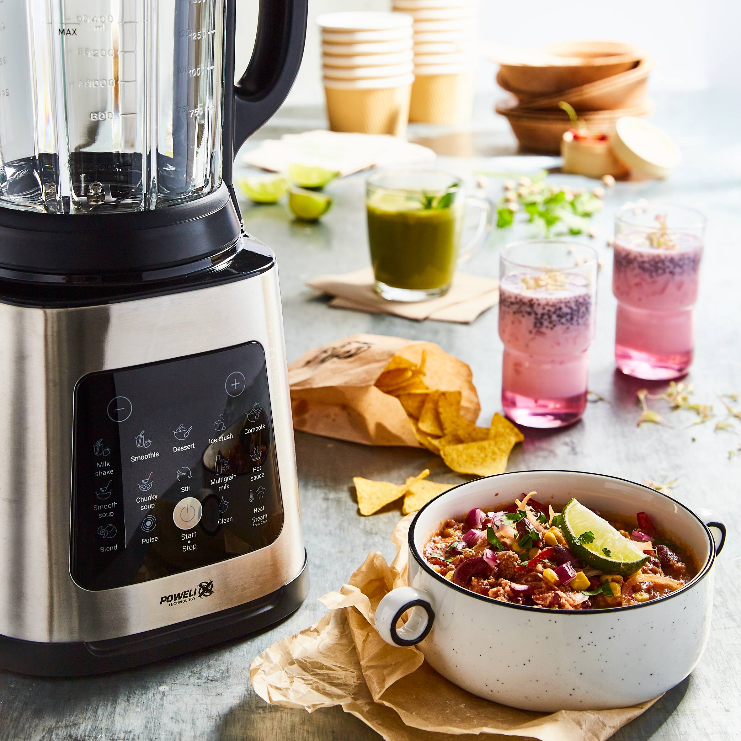 A Perfectmix Cook turmixgéppel számtalan ételt készíthet, a jeges üdítőktől és gyümölcsturmixoktól kezdve a meleg, sűrű levesekig és pörköltekig. Ez a sokoldalú, melegítő funkcióval felszerelt Tefal turmixgép nagy sebességű, erőteljes turmixolást és még sok más funkciót kínál, így néhány kattintással készíthet meleg, hideg, turmixolt és turmixolás nélküli ételeket. Fedezze fel a 10 automatikus programot hideg és meleg ételek készítéséhez, valamint a gőzölési funkciót egy speciális kosárral, amely a turmixgépet egészséges gőzölőedénnyé alakítja - ideális turmixgép a tápanyagokban gazdag hal-, zöldség- és a tenger gyümölcseiből készült ételek elkészítéséhez. A főzés utáni takarítás nem is lehetne egyszerűbb - a kivehető pengékkel és a baktériumok 99,99%-át elpusztító, egyedülálló mélytisztító funkcióval az eszköz tökéletesen higénikus, az Ön egészsége érdekében. A nagyteljesítményű Powelix késes technológia hihetetlen teljesítményt nyújt, amely akár 30%-kal gyorsabb, és az intuitív érintőképernyővel együtt korlátlan lehetőségeket biztosít a főzéshez.