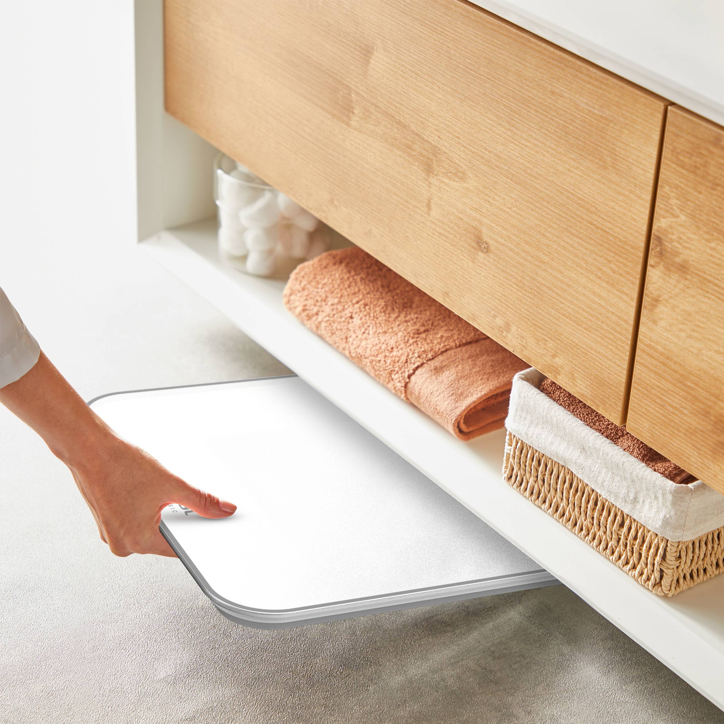 Átlátszó, könnyen leolvasható LED-kijelzővel, így mindig kényelmesen használható Személymérleg 180 kg terhelhetőséggel és 100 g-os pontossággal A mérlegfelület vékony kialakítása (31 x 31 cm) mindössze 22 mm magas, így könnyen tárolható, ha nem használja