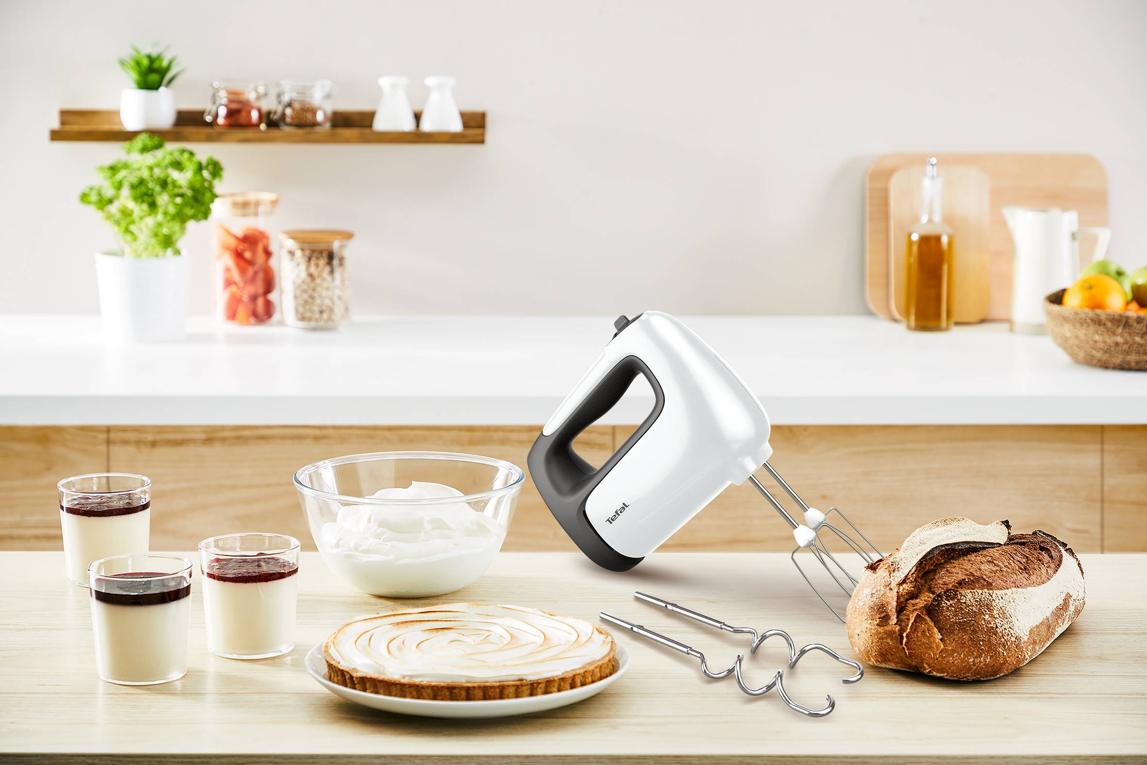 Az otthoni sütést semmi sem éri fel, legyen szó a finom ízekről vagy a sütéssel járó örömről és semmi sem hasonlítható ahhoz az érzéshez, amit akkor érez, amikor a családja vagy a barátai ízlelgetik a finom sülteket. A Tefal most egy olyan ideális segítőtársat kínál a főzéshez, amely mindig kéznél van: a Tefal Prep 'Mix kézi mixert. Ez a sokoldalú mixer végtelen lehetőségeket kínál, csupán egy karnyújtásnyira Önhöz. Elektromos mixer 500 W-OS, nagy teljesítményű motorral. Két rozsdamentes acél könnyedén feldolgozzák és tökéletesre turmixolják, vagy habbá verik az alapanyagokat, míg a két rozsdamentes acél dagasztóspirállal a sűrűbb tészták készíthetők el. Fedezze fel a kézi turmixolást, amely az 5 sebességfokozatnak és a Turbó funkciónak köszönhetően még sosem volt könnyebb. A teljesítmény az ergonomikus és strukturált fogantyúval felszerelt, és stabil tárolóhelyzetettel rendelkező okos dizájnnal egészül ki, amelyek biztosítják, hogy a konyhapult mindig tiszta marad, a mosogatógépben elmosható, levehető alkatrészek pedig egyedi praktikus használatot biztosítanak minden nap.