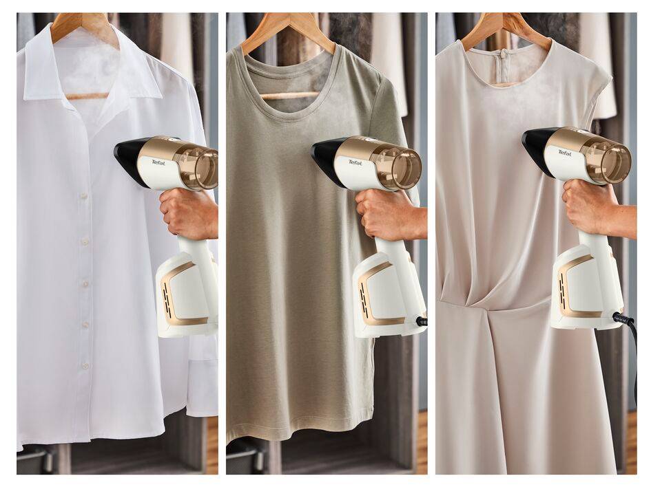Az Ön készlete Tefal AeroSteam 2 az 1-ben kézi gőzölő és vasaló szívófunkcióval DT9820F0 Fehér/arany